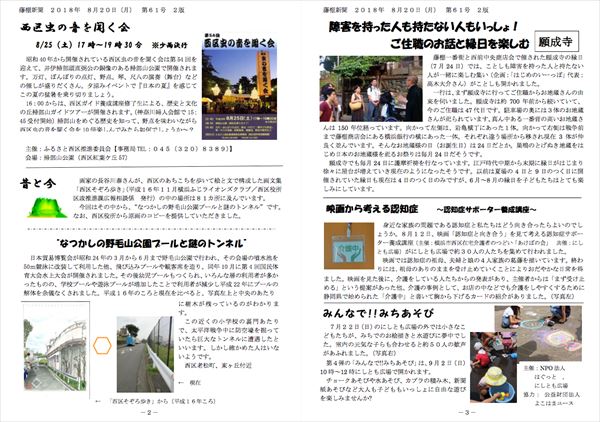 藤棚新聞は、藤棚エリアの情報を発信している地域新聞(フリーペーパー)。藤棚商店街周辺の店舗や施設を中心に配布している。2008(平成20)年から隔月1回のペースで発行を始め、2018(平成30)年で創刊から10年目を迎えたそうだ。