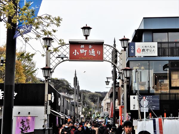 さすが年間約2000万人訪れる小町通り、平日でもこんなに賑わう