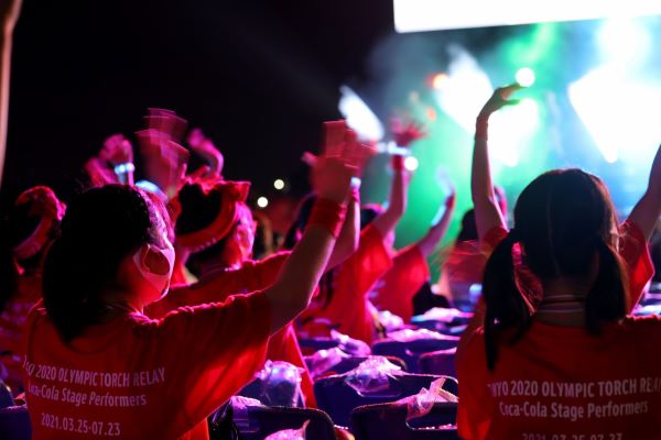 沿道を走るリレーが感染対策で中止となったため、各会場に舞台を設置し、舞台上でトーチからトーチへと火を渡す「トーチキス」という方式に。さまざまな参加者によるその模様を取材!