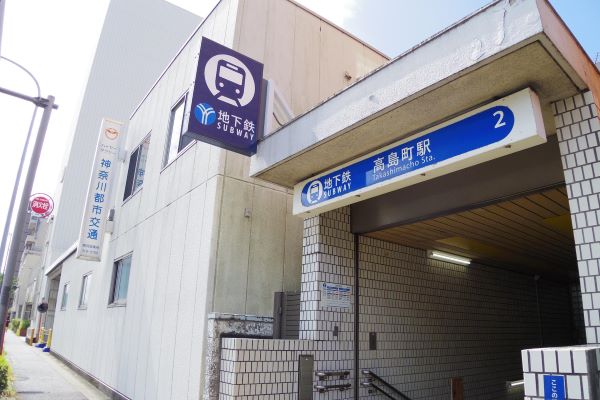 ブルーライン高島町駅は1976年に開業したが、地下埋設物や地盤、国道1号線との関係でシールド工法により建設。線路ごとにトンネルを掘ったため、ホームは同じ階なのに2分割されている。