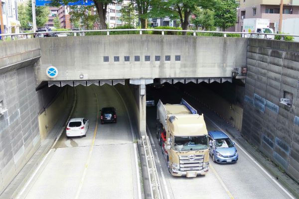 その国道1号線のアンダーパスは、高島町交差点の高島トンネルを見てもらうと分かりやすい。高島町交差点側からトンネルに入ると、帷子川の少し手前で地上の道路に合流する。このため高島町駅付近の地下には国道、下水道、地下鉄と、3種類のトンネルが入り組むことになり、地下鉄のトンネルが深くに掘られることとなった。