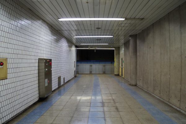 おそらくだが、シールドトンネル建設時にシールドマシンを地下に送り込むために、地上から地下に向かって立坑が掘られたと考えられる。たとえるなら、地上4階建てのビルがまるごと地下に埋め込まれたようなイメージだ。明らかに断面が違うので、箱型トンネルとシールドトンネルの境目はすぐにわかる。