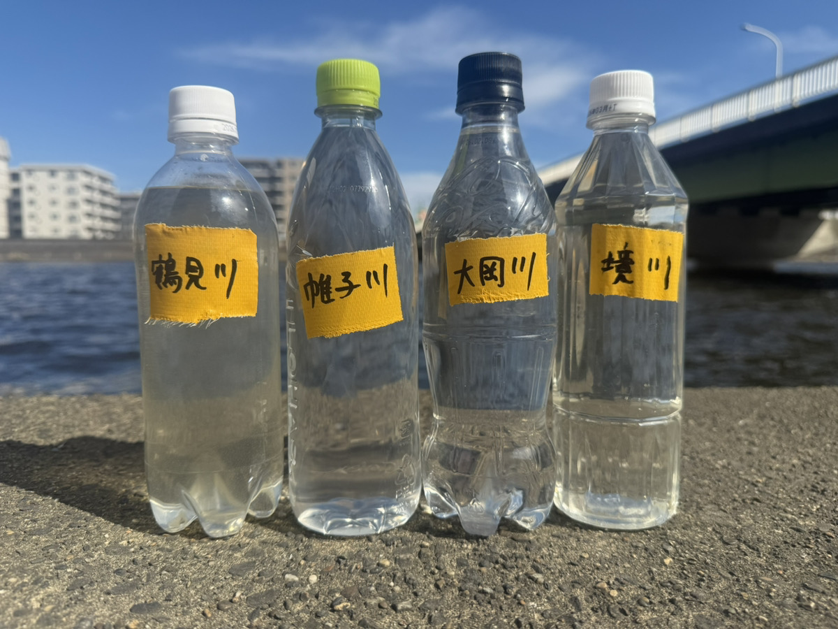 採取した川を並べてみた。鶴見川だけが濁っている