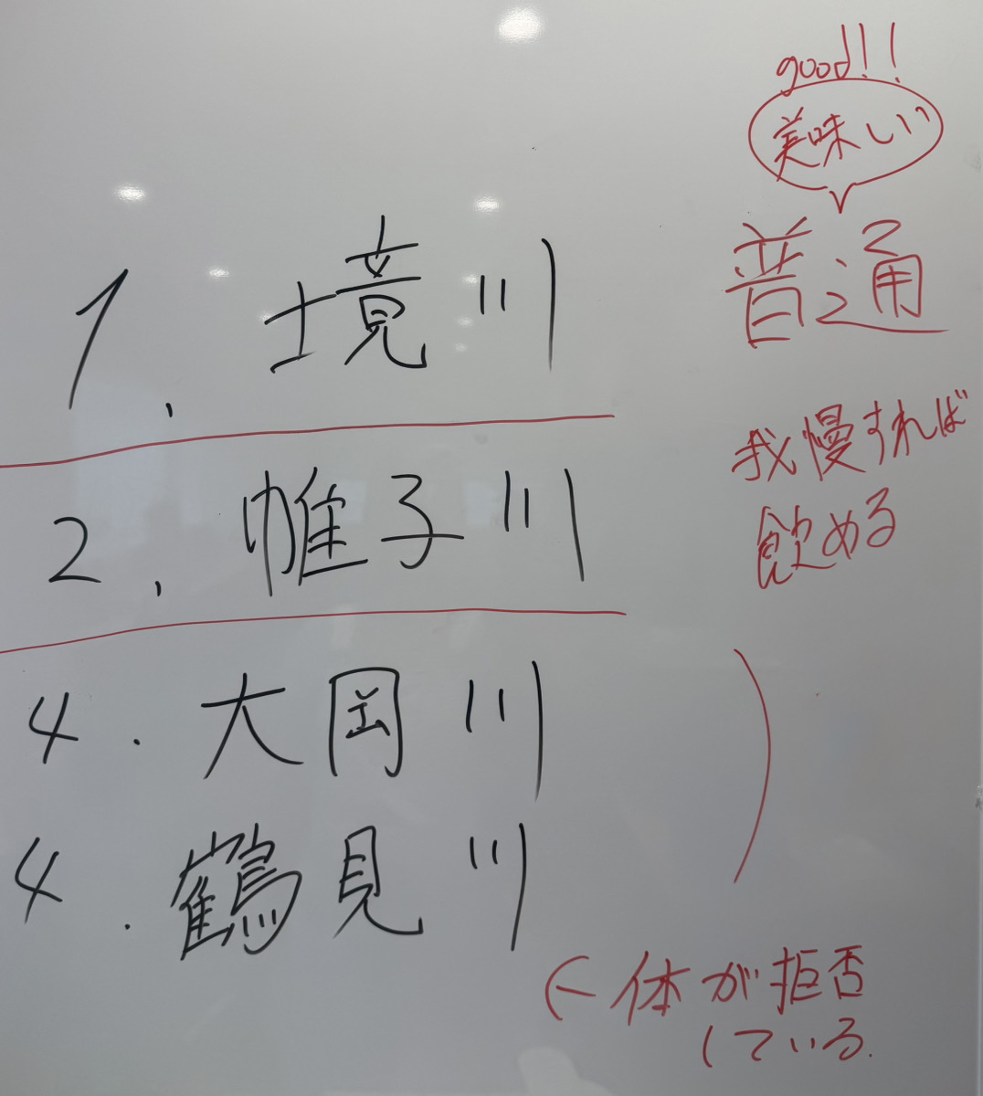 安田の意見...鶴見川が最下位。脳が飲み込むなと拒否している。嗚咽レベルだ