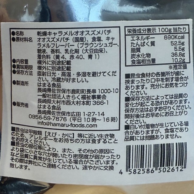 長崎のパティシエさんが一枚ずつ手作りしているもので、生地にはコオロギパウダーとクッキーには大コオロギが丸々1匹乗っています。