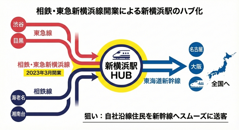 自社沿線の住民を、新横浜というハブを通じて新幹線へと送り込むこと。